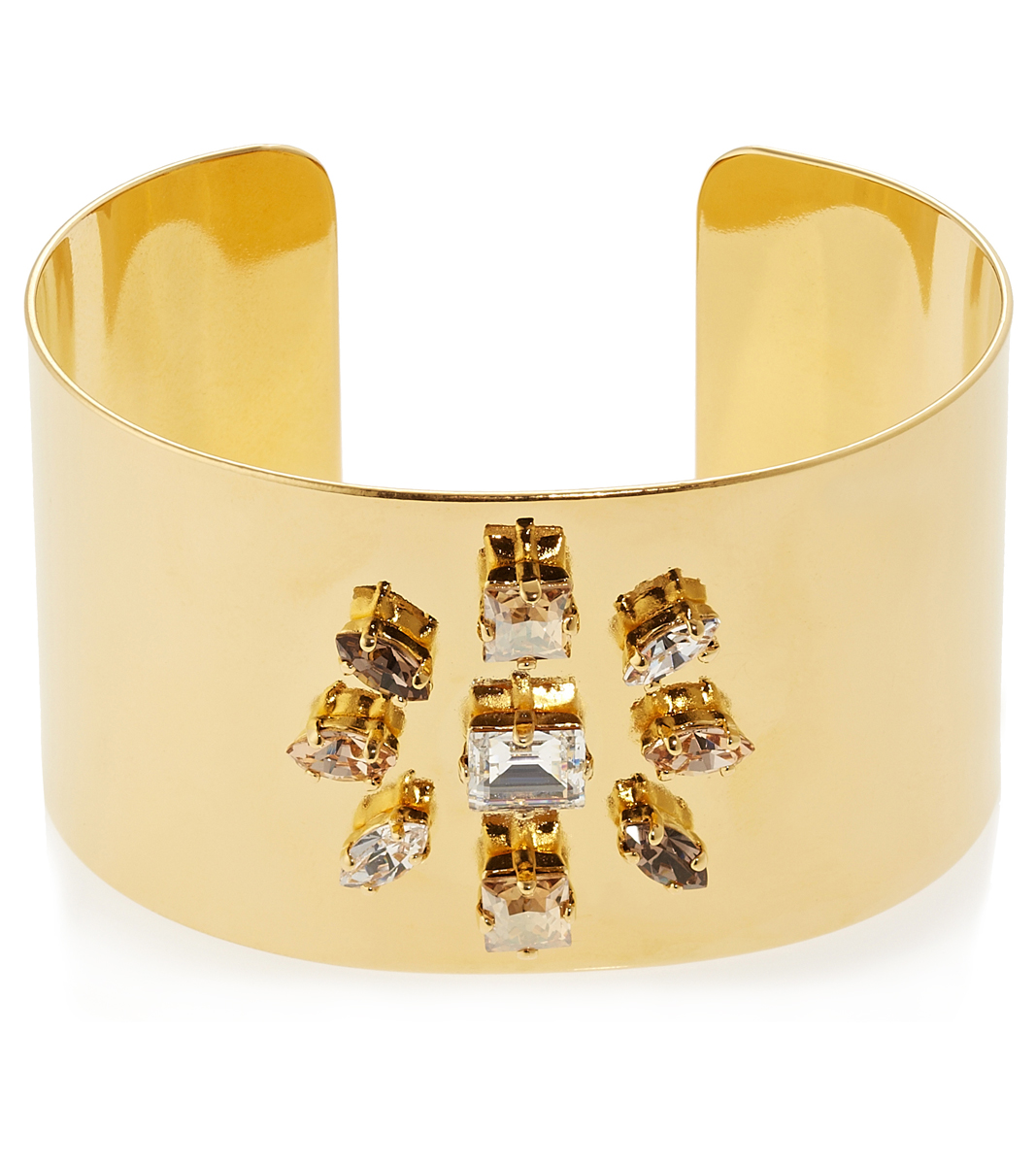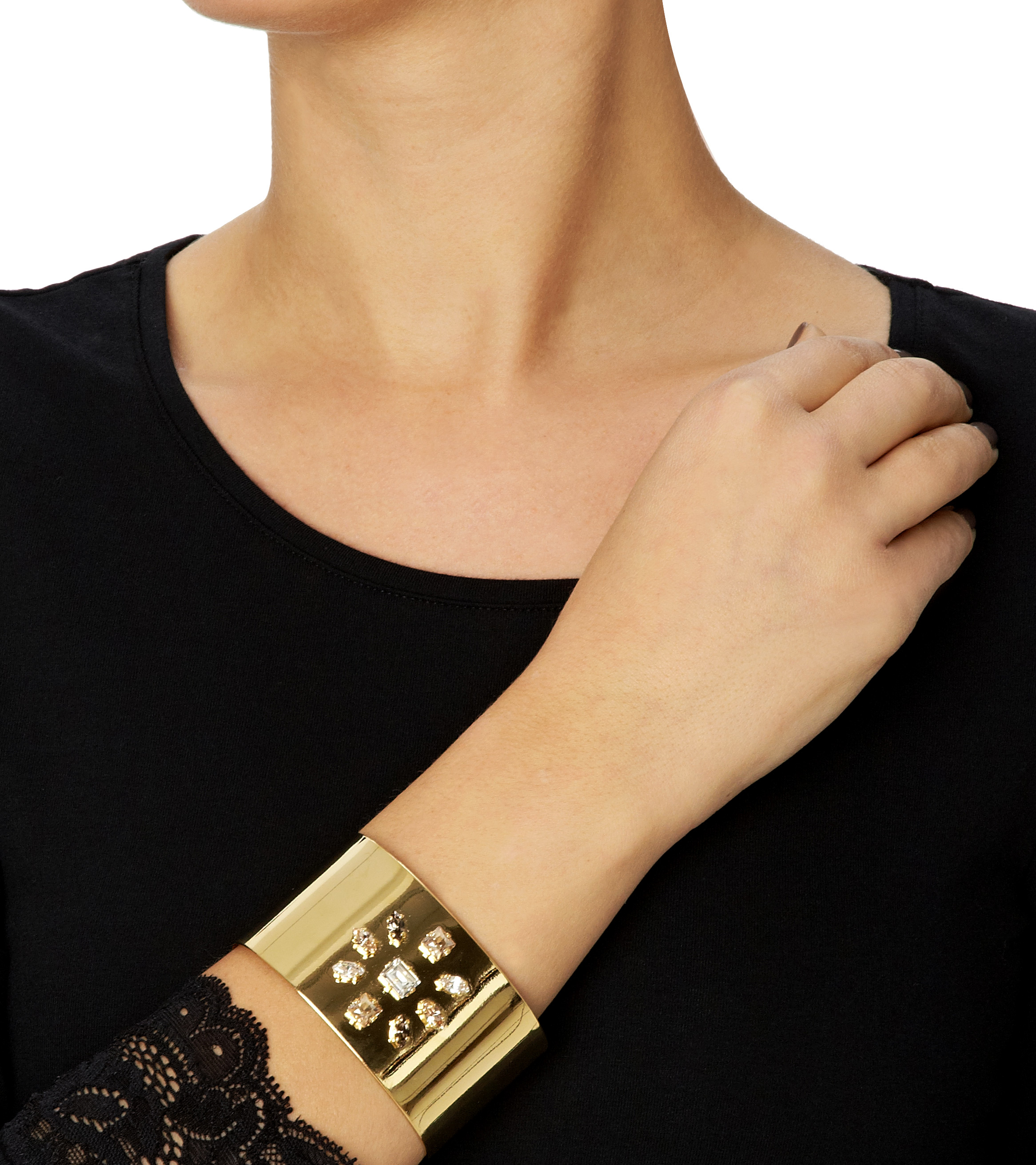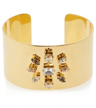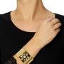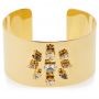 Elegante Armspange aus Messing mit hochwertiger 23. Karat Vergoldung. "Made in Germany". Gold-, Greige und Light Silk schimmernde SWAROVSKI ELEMENTS verleihen Ihren Outfits eine glamouröse Note. Die Armspange überzeugt - ganz pur auf der Haut, aber auch über einem Pullover- oder Blusenärmel.
