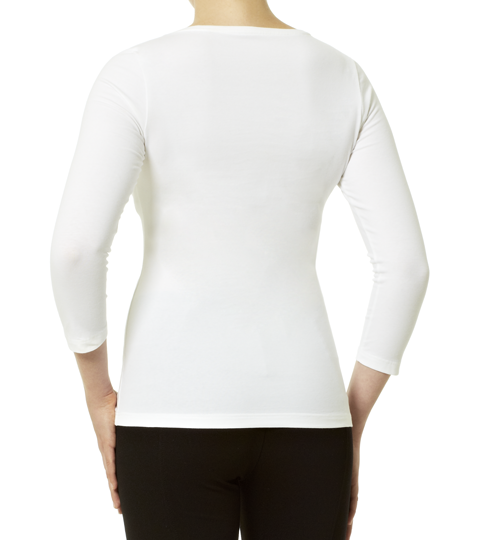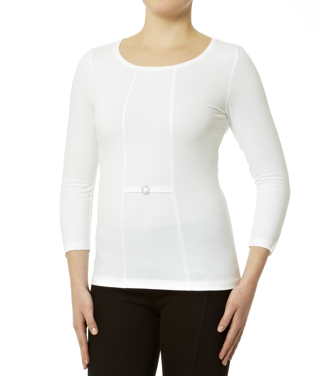 Unser weißes Shirt mit einem ¾ Arm ist wie alle amendia Shirts aus Baumwolle feinster Qualität gefertigt. Es fühlt sich geschmeidig auf der Haut an und verspricht höchsten Tragekomfort. Das kompakte Material ist fest und dennoch herrlich weich. Die mittig angebrachte Schnalle mit SWAROVSKI ELEMENTS schmückt das klassische Shirt mit einem Hauch von Extravaganz. Das Shirt ist ideal für jede Jahreszeit.