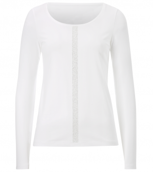 Das weiße Top mit 3/4 langem Arm und vertikal aufgebrachten SWAROVSKI ELEMENTS verleiht dem klassischen Shirt einen Hauch von Extravaganz und dezente Eleganz. Wie alle amendia Shirts bietet die feine Baumwolle und deren hochwertige Verarbeitung Geschmeidigkeit und höchsten Tragekomfort. Das kompakte Material ist fest und dennoch herrlich weich. Das Zusammenspiel edler Baumwolle und hochwertiger Veredelungen machen das Shirt zu einem absoluten Lieblingsteil. Ideal für jede Jahreszeit. Auch mit langem Arm, s. Shirt EVA und mit kurzem Arm, s. Shirt MIA erhältlich.