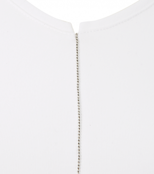 Das weiße Shirt Nicki ist mit einem feinen, silberfarbenen Metallperlenbändchen verziert. Das Zusammenspiel aus feinster Baumwolle und hochwertiger Veredelung machen das Shirt einzigartig und versprechen zudem höchsten Tragekomfort. Das kompakte Material ist fest und dennoch herrlich weich. Das Shirt ist ideal für jede Jahreszeit.