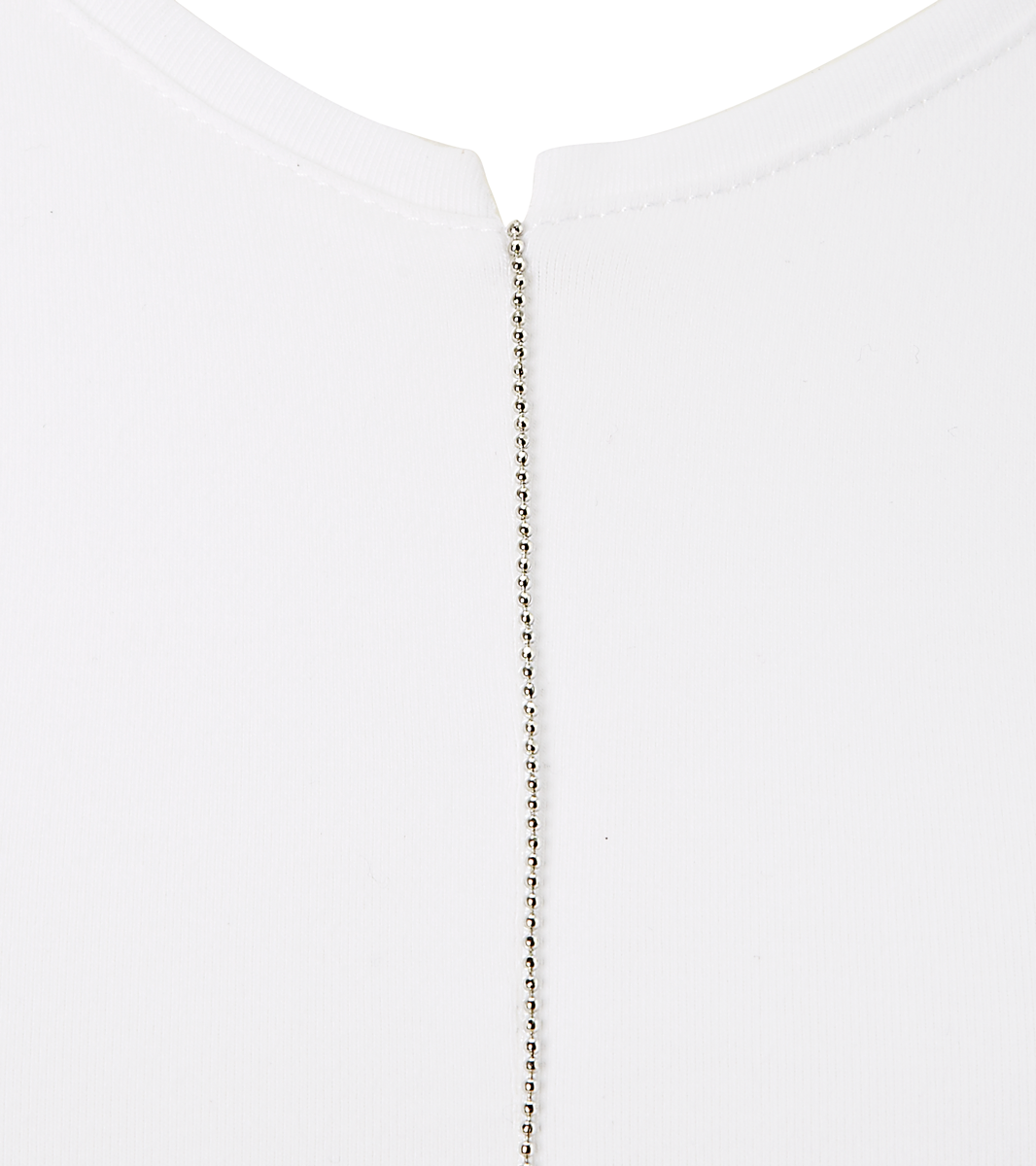 Prägnante, mittige Teilungsnaht mit silberfarbener Perlenapplikation