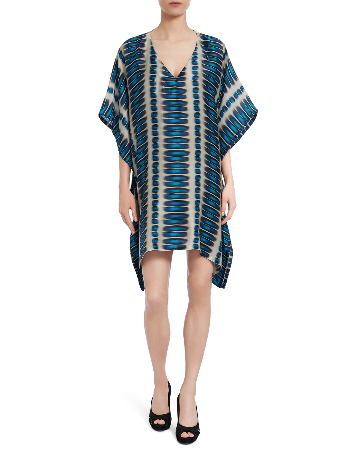 Feinste Seide aus Italien verarbeitet in federleichte Tuniken und Kaftane. Der bezaubernde Print beim Modell "MARE BLUE" mit Elementen, die an das Meer erinnern, auf weicher fließender Seide überzeugt mit einer dezenten Eleganz. Ein zeitloses "Keypiece", kombinierbar mit vielen exquisiten Teilen, z.B. mit schmalen Hosen. Am Strand und am Pool überzeugen die Tuniken und Kaftan auch ohne jede Kombination. Ready: to feel good.
