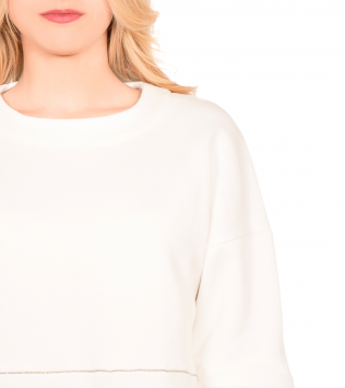 Das creme-weiße weiche Sweatshirt ist sportlich und doch extravagant. Wie bei allen amendia Shirts & Sweater bietet die feine Baumwolle und deren hochwertige Verarbeitung Geschmeidigkeit und höchsten Tragekomfort. Das kompakte Material ist fest und dennoch wunderbar weich. 2 Reihen schimmernder Metallperlenbändchen rund um den Sweater verleihen ein Plus an Style und Eleganz. Die edle Baumwolle ist aus kontrolliert biologischem Anbau (kbA). Ein herrliches Tragegefühl und ein gutes Gewissen lassen unsere Sweater & Pants zu echten Lieblingsteilen werden. Ideal für die kalte Jahreszeit.